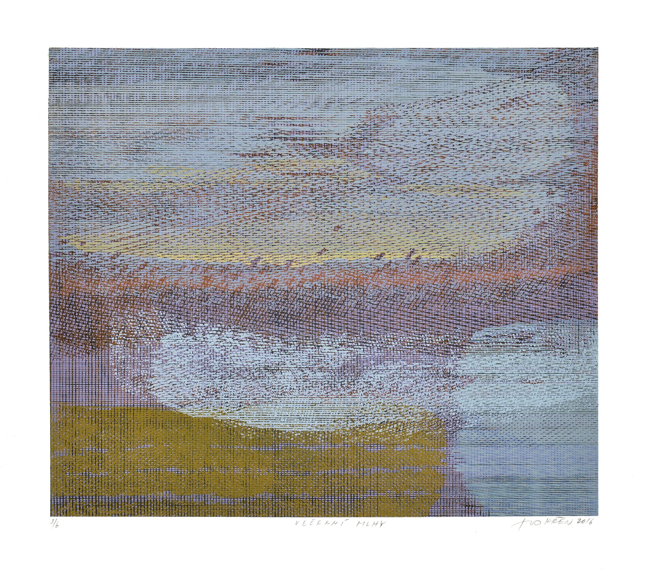 Ivo Křen (1964–2020) byl český grafik a kurátor, významný představitel vícebarevného linorytu. Po studiích výtvarné výchovy působil ve Východočeské galerii a poté ve Východočeském muzeu, kde vedl sbírku ateliérového skla a připravil expozici Českého skla 20. století. Byl členem SČUG Hollar i skupiny Rubikon. Získal řadu ocenění Grafiky roku za inovativní vícebarevné soutisky. Jeho tvorba se vyvíjela od expresivních figurálních motivů k barevným krajinám, strukturám a abstrahovaným kompozicím.
